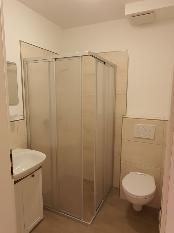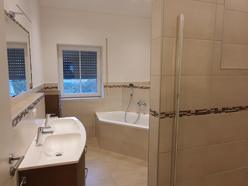 Badezimmer mit Eck-Badewanne, Dusche, und WC, Gäste-WC, Dusche und WC im Kellergeschoß,
